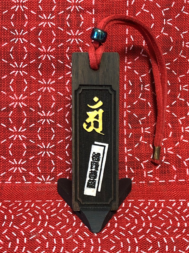 高級木材『黒檀』を使用した千社札です。 材質:黒檀 サイズ:L72×W22×t5 mm 紐長:100mm